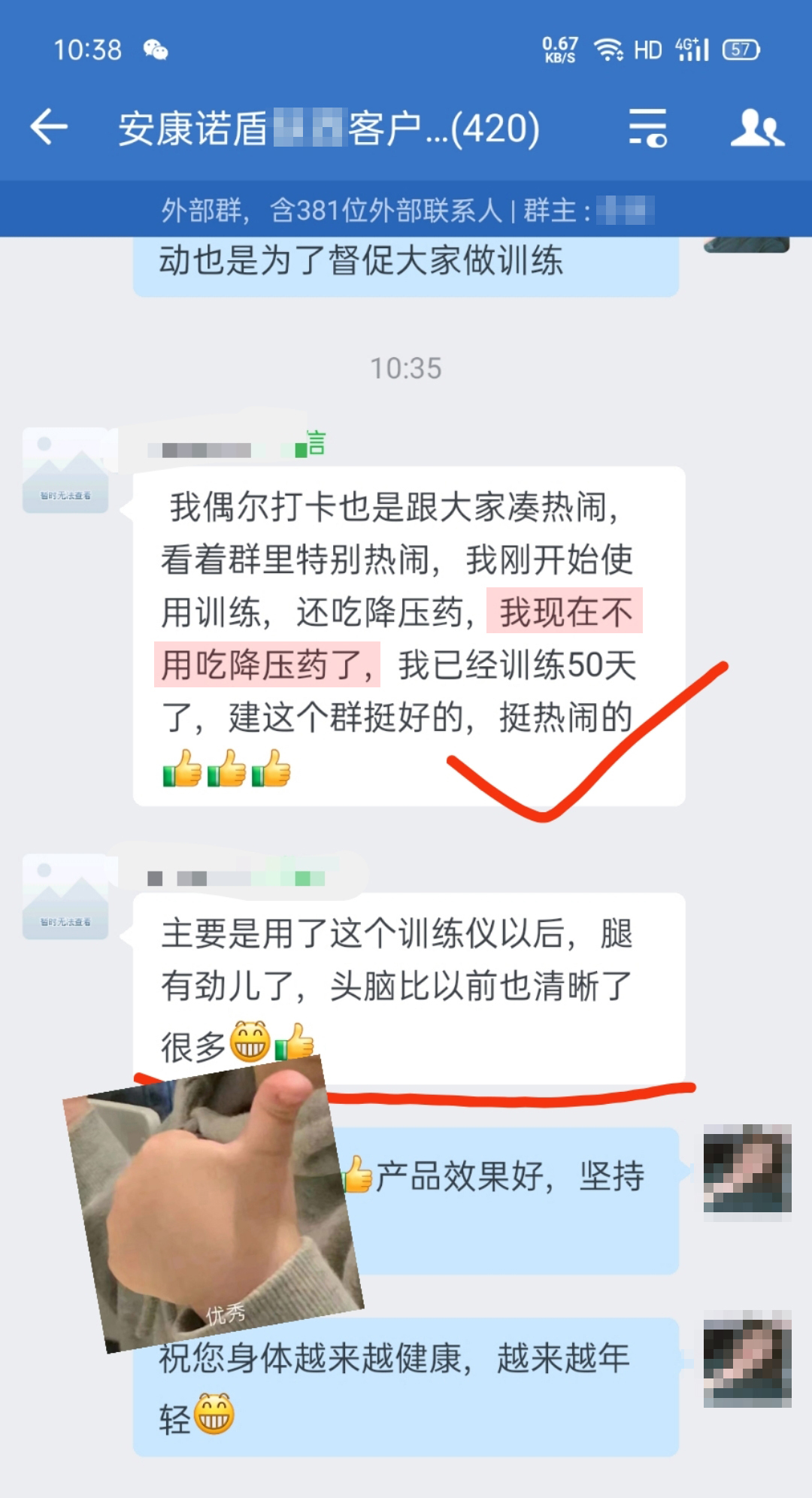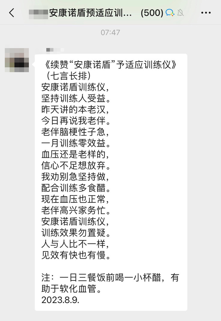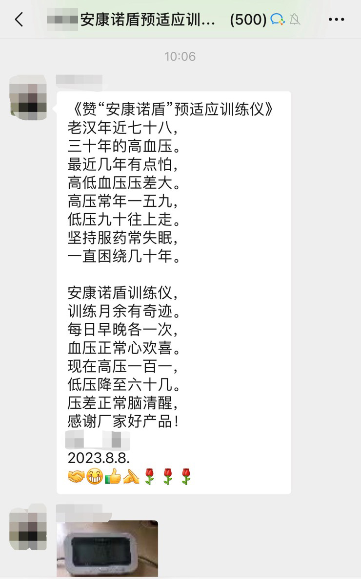 許多人可能不知道,《中國(guó)心腦血管病報(bào)告2021》曾展示了一組令人心驚的數(shù)據(jù): 我國(guó)心腦血管病現(xiàn)患人數(shù)為3.6億,每年約有380萬(wàn)人死于心腦血管病,占我國(guó)每年總死亡人數(shù)的56%。 而幸存下來(lái)的患者,有75%不同程度喪失勞動(dòng)能力、40%重殘。 遏制心腦血管疾病上升趨勢(shì),是一項(xiàng)巨大的挑戰(zhàn)! 預(yù)防心腦血管疾病,要從三個(gè)方面入手: 改善生活習(xí)慣 調(diào)整作息習(xí)慣 控制危險(xiǎn)因素 生活、作息習(xí)慣改善很容易做到,但控制危險(xiǎn)因素,很多人不知道從何入手。 首都醫(yī)科大學(xué)宣武醫(yī)院吉訓(xùn)明及其研發(fā)團(tuán)隊(duì)經(jīng)過(guò)多年深入研究,成功轉(zhuǎn)化為可用于臨床的儀器,并榮獲2020國(guó)家科技進(jìn)步獎(jiǎng)二等獎(jiǎng)。 他表示,缺血預(yù)適應(yīng)的訓(xùn)練,主要是用于心腦卒中的預(yù)防和治療,經(jīng)臨床結(jié)果表明,對(duì)這四類人群有顯著的效果。 安康諾盾預(yù)適應(yīng)訓(xùn)練儀就是這樣一款儀器,通過(guò)對(duì)人體進(jìn)行反復(fù)、短暫、無(wú)創(chuàng)傷、無(wú)危害的缺血預(yù)適應(yīng)訓(xùn)練,激發(fā)人體免疫系統(tǒng)的應(yīng)急機(jī)制,從而達(dá)到預(yù)防心腦血管等疾病的發(fā)生。 使用過(guò)的用戶紛紛給出了好評(píng)并推薦給家人、朋友。 因內(nèi)容太多,小康君從中節(jié)選出20位用戶的真實(shí)反饋,分享給大家: “用了一段時(shí)間安康諾盾訓(xùn)練儀后 血壓恢復(fù)正常,頭暈的感覺(jué)消失了” “用戶的一首首詩(shī)歌 讓人感動(dòng)” “用了70天后,不僅上樓變的輕快 腿腳也有力了” “周圍有好多朋友看到效果后 要我推薦給他們”