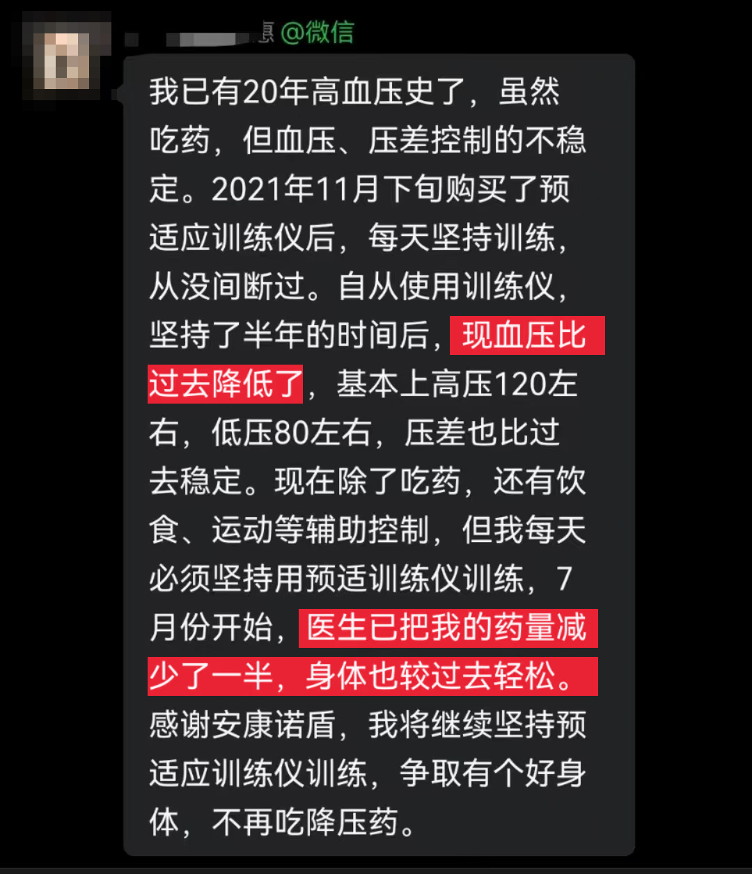 冬季,是心腦血管疾病的“魔鬼季節(jié)”。 天氣寒冷,室內(nèi)外溫差大,忽冷忽熱的,很容易引起血壓升高、血栓形成。 英國(guó)的一項(xiàng)研究發(fā)現(xiàn):氣溫每降低1℃,心臟疾病發(fā)病率就會(huì)增加2%。 而如今寒流襲來(lái),多低降溫超過(guò)10度以上,保護(hù)血管健康,迫在眉睫! 首都醫(yī)科大學(xué)宣武醫(yī)院吉訓(xùn)明及其研發(fā)團(tuán)隊(duì)經(jīng)過(guò)多年深入研究,成功轉(zhuǎn)化為可用于臨床的儀器,并榮獲2020國(guó)家科技進(jìn)步獎(jiǎng)二等獎(jiǎng)。 他表示,缺血預(yù)適應(yīng)的訓(xùn)練,主要是用于心腦卒中的預(yù)防和治療。 安康諾盾預(yù)適應(yīng)訓(xùn)練儀就是這樣一款儀器,通過(guò)對(duì)人體進(jìn)行反復(fù)、短暫、無(wú)創(chuàng)傷、無(wú)危害的缺血預(yù)適應(yīng)訓(xùn)練,激發(fā)人體免疫系統(tǒng)的應(yīng)急機(jī)制,從而達(dá)到預(yù)防心腦血管等疾病的發(fā)生。 使用過(guò)的用戶紛紛給出了好評(píng)并推薦給家人、朋友。 因內(nèi)容太多,我們從中節(jié)選出20位用戶的真實(shí)反饋,分享給大家: “使用后血壓穩(wěn)定了 家屬也跟著一起訓(xùn)練” “血壓保持平穩(wěn) 用藥減半” “控制血壓效果明顯 身體更輕松” “斑塊減少明顯 胸悶、氣短狀況消失”